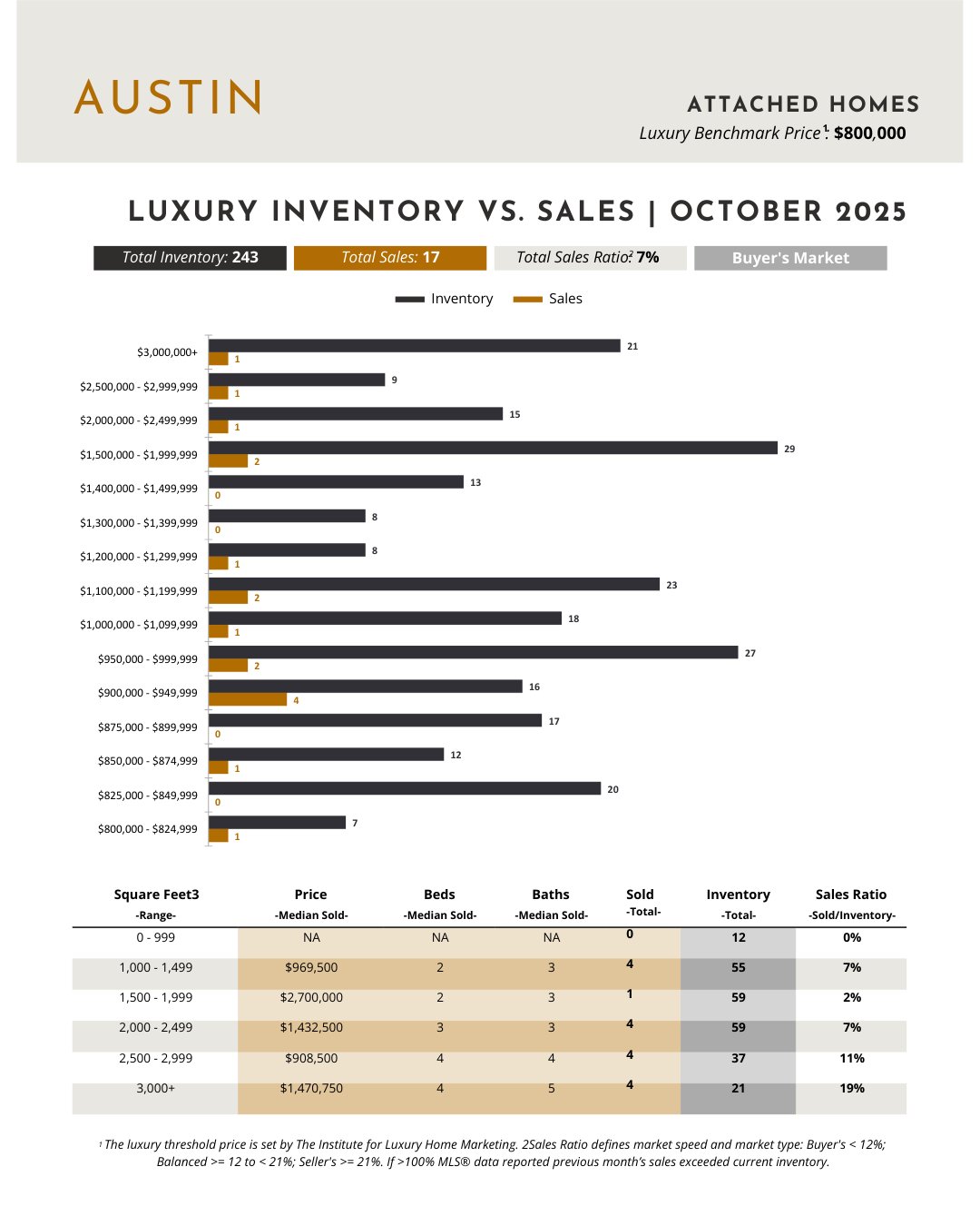 The attached luxury segment is currently in a buyer’s market with a 7% sales ratio .